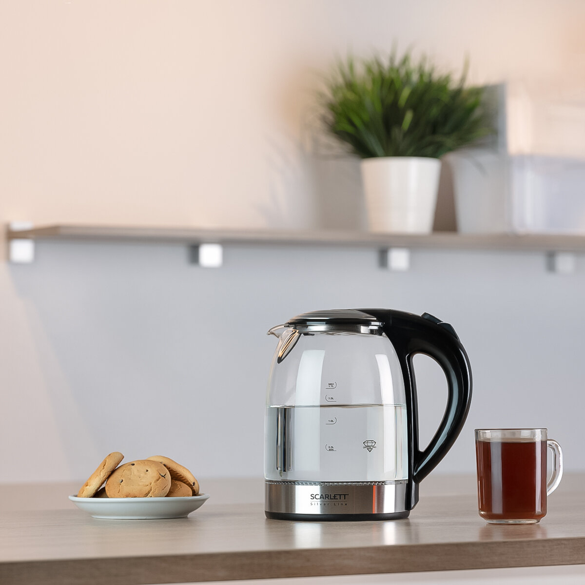 Удобный в эксплуатации, гармонично смотрится в интерьере моей кухни. Хорошо вижу через прозрачные стенки чайника сам процесс закипания и уровень воды. Стекло прочное, моется легко, да и практически не сильно пачкается, главное, что ничем не пахнет.