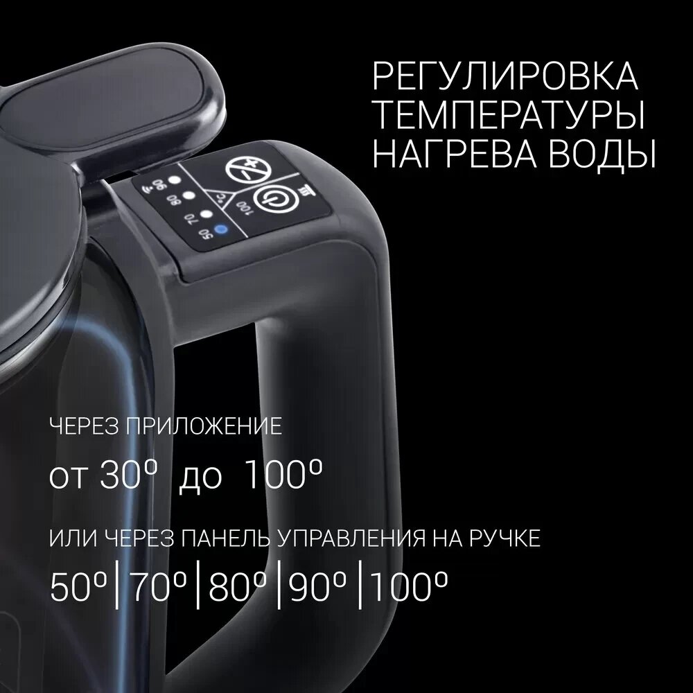 | Плюсы: | Отличный чайник! Огромный плюс - управление с помощью телефона и регулировка температуры нагревания воды. |