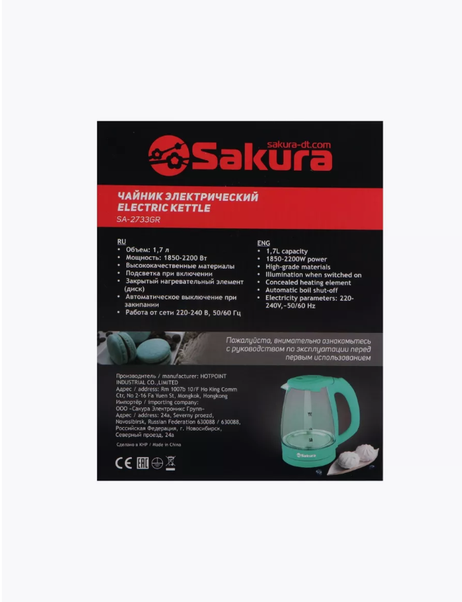 СохранитьЧайник электрический Sakura SA-2733GR интересное: