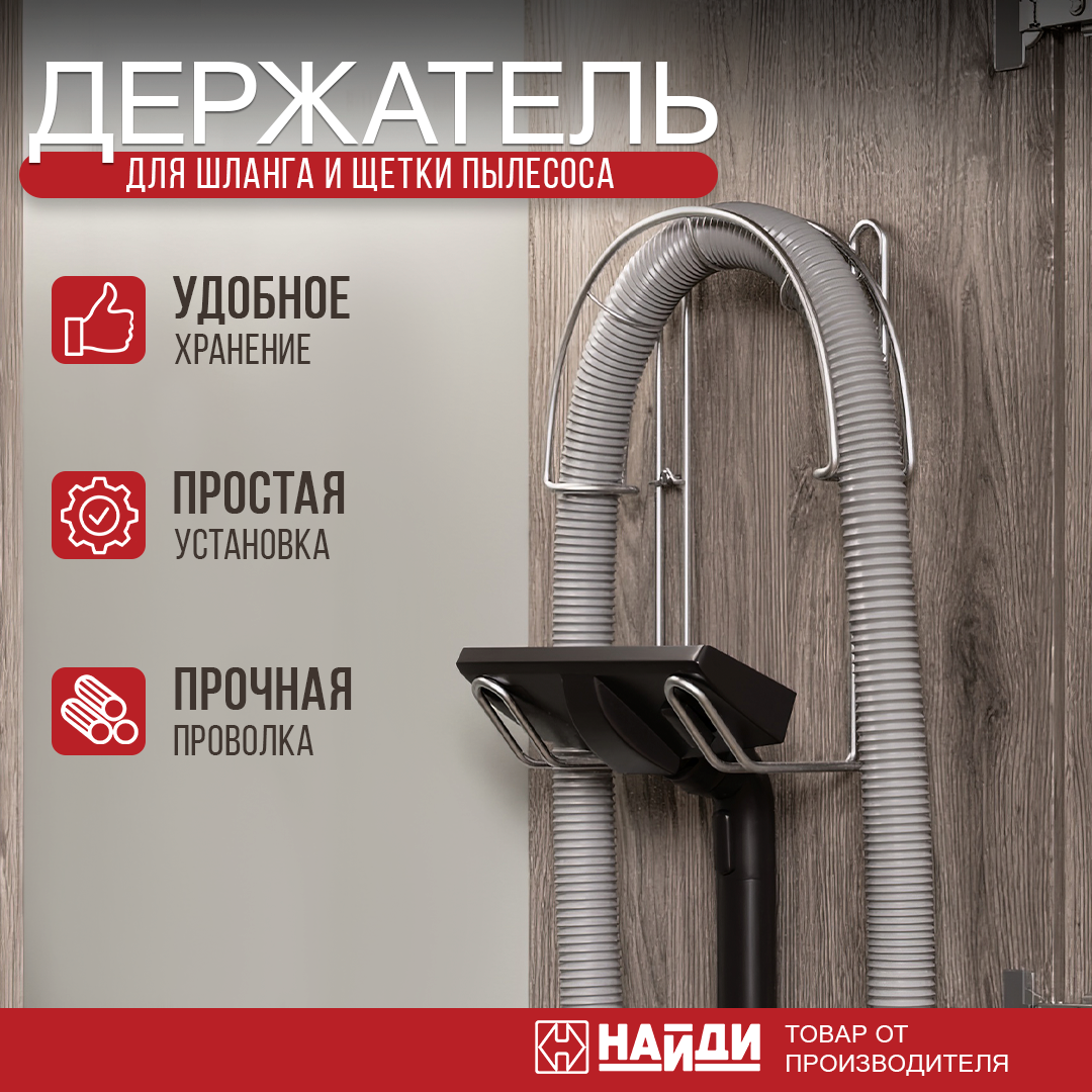 Держатель шланга и щетки пылесоса найди органайзер настенный. Металлик серебристый интересное: