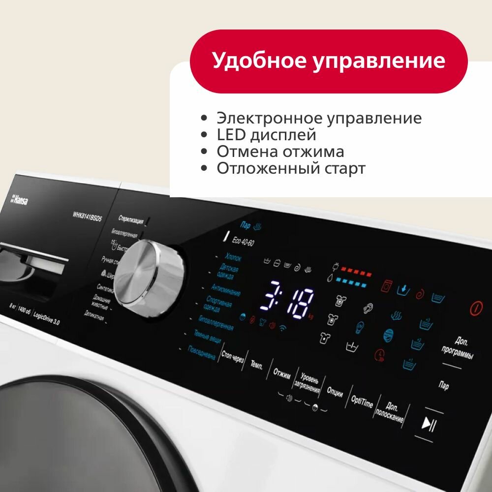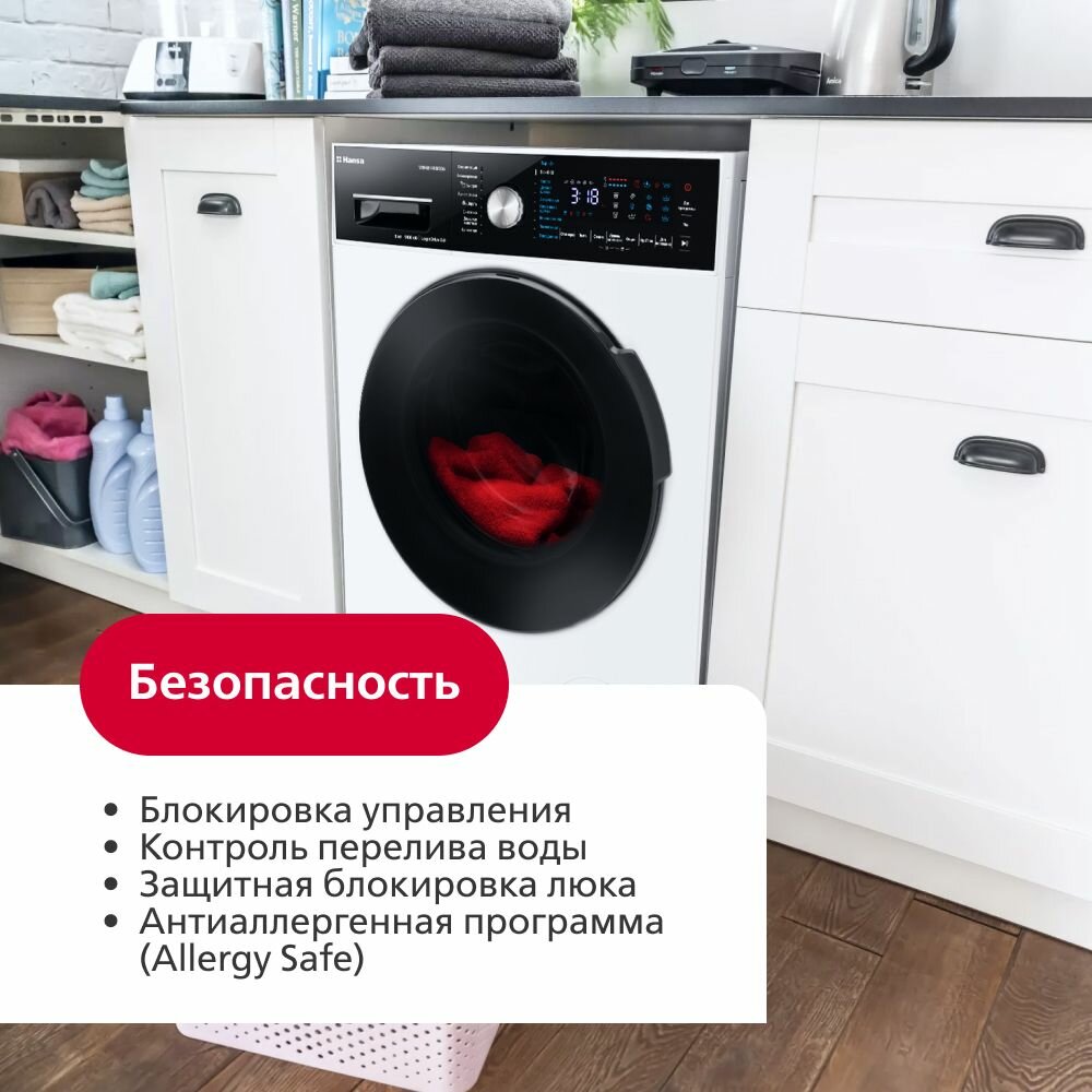 Стиральная машина Hansa WHK8141BSD5, с фронтальной загрузкой, с паром, 8кг, 1400об/мин, инверторная