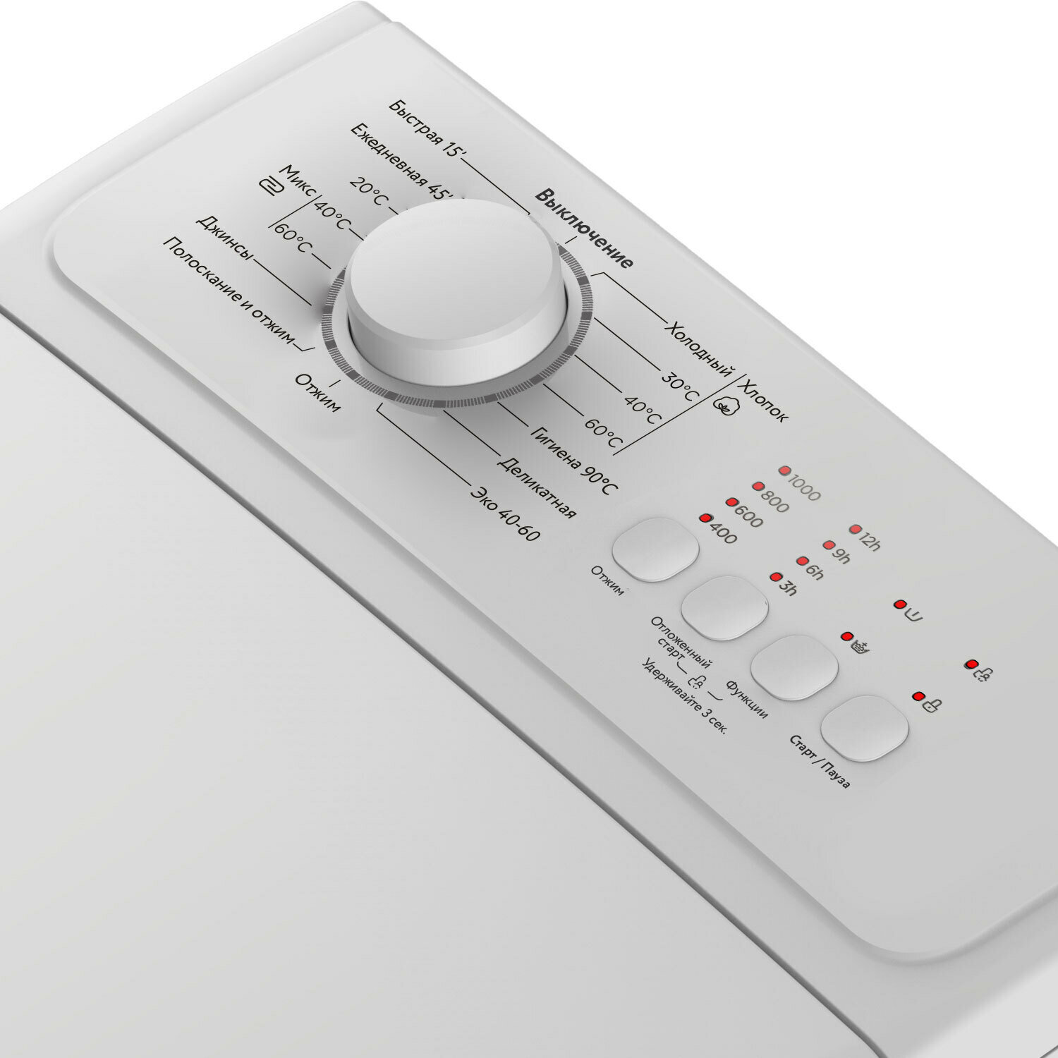 Нельзя изменить температуру стирки Отложенный старт с шагом в 3 часа |