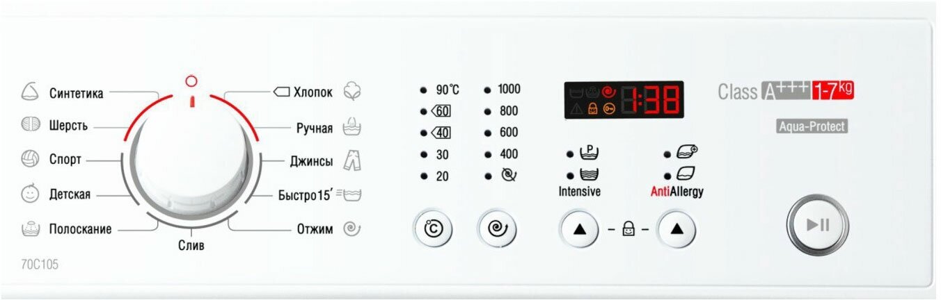 | Дополнительная информация | режим анти-аллергия, самодиагностика; коллекторный мотор; система защиты от протечек Aqua-Protect; глубина по панели управления с учетом кнопок и ручек: 53,7 см, глубина с люком 55 см |