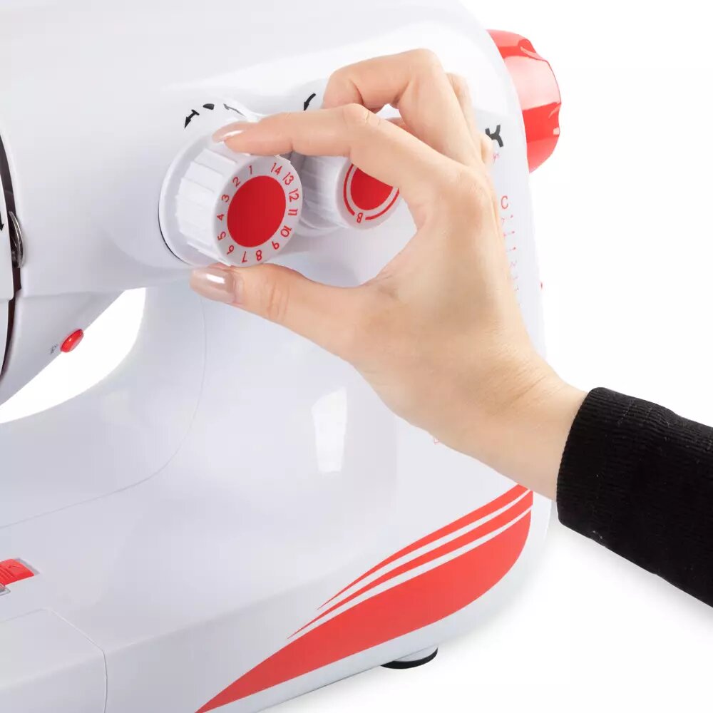 | Дополнительная информация | число нитей - 2 нити (верхняя нит/нижняя нить),количество строчек - 1, размер иглы: #14, высота прижимной лапки: 5.5 мм, длина стежка при функции «реверс»: 2 - 2.5 мм, 42 вида строчки, обработка петель и пришивание пуговиц, регулировка натяжения нити, регулировка скорости шитья, педаль управления, прямой и обратный ход при шитье, функция автоматической намотки нити, пошив до четырех слоев обычной и джинсовой ткани, отсек для аксессуаров, вшивание молнии, встроенная LED подсветка |