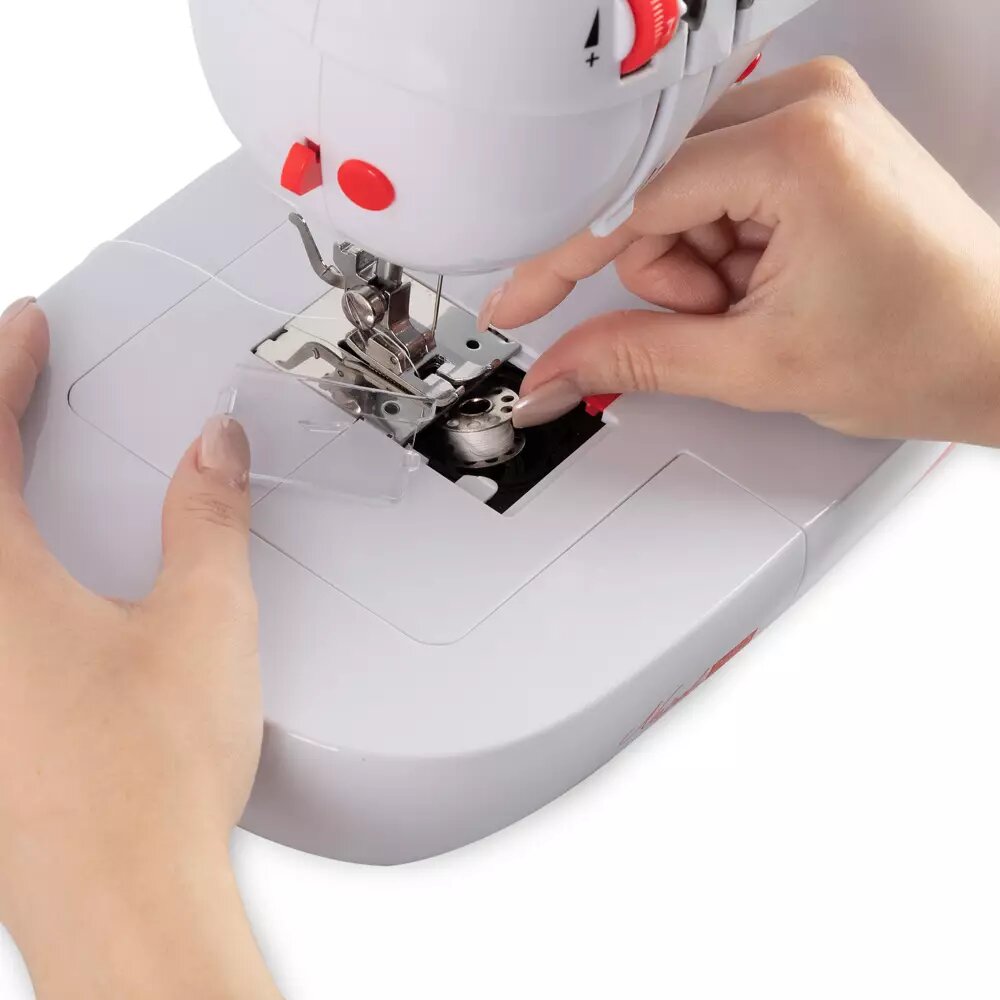 | Подробная комплектация | швейная машинка: 1 шт., ножной привод: 1 шт., сетевой адаптер питания: 1 шт., игла: 2 шт., нитевдеватель: 1 шт., шпули: 2 шт., пластина для пришивания пуговиц: 1 шт., вспарыватель: 1 шт., ножка для пришивания молнии: 1 шт., гарантийный талон, руководство по эксплуатации |