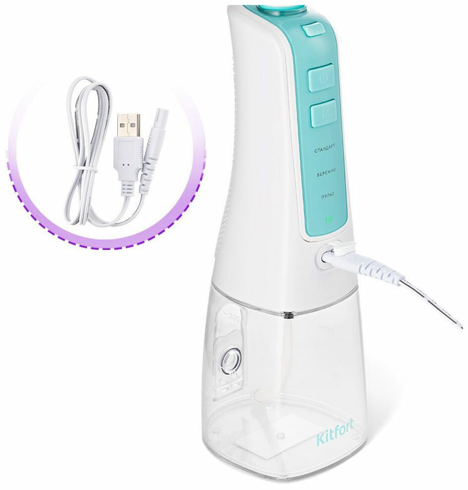 Ирригатор Kitfort КТ-2924-3 бело-бирюзовый, портативный