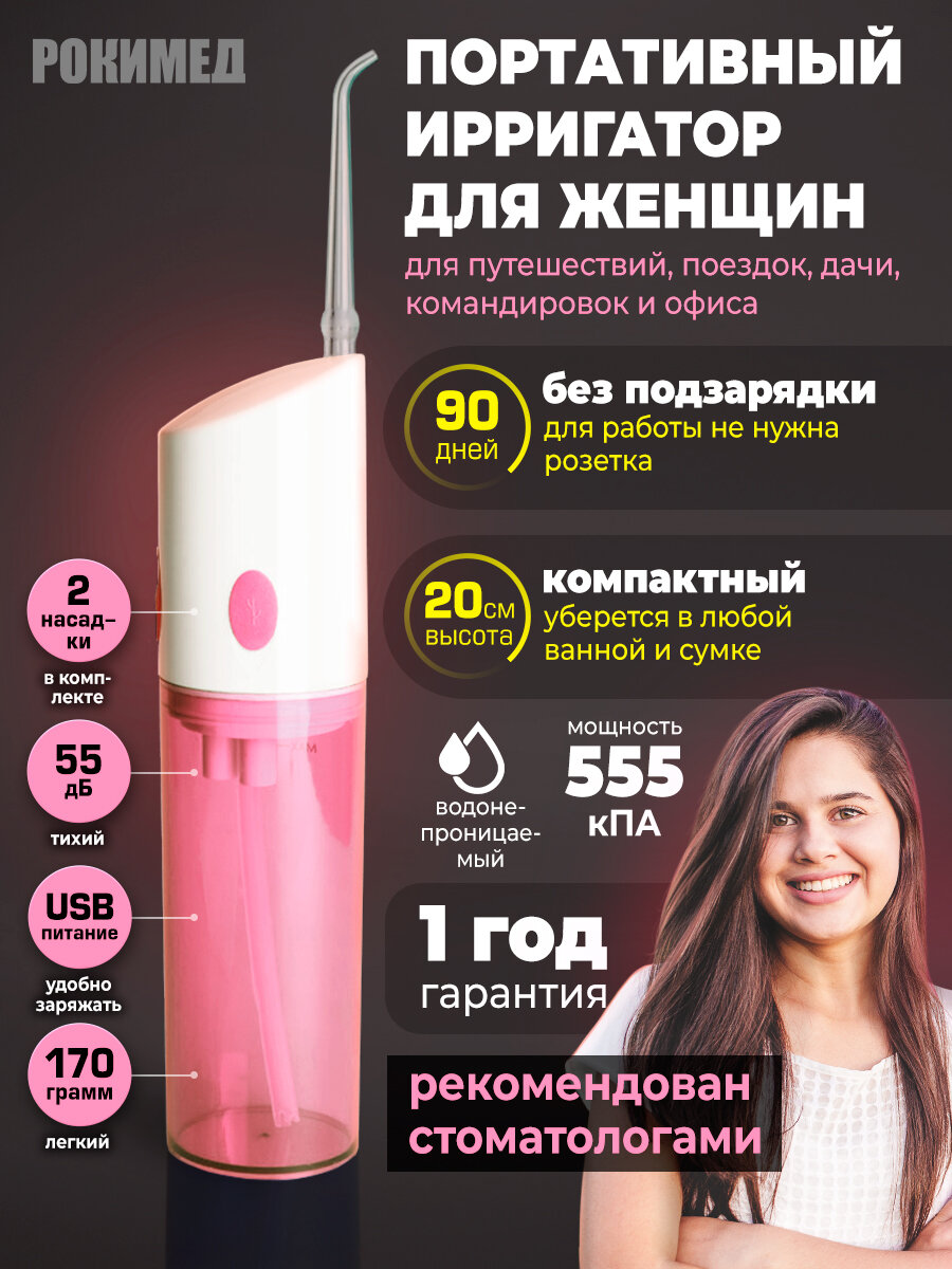 Портативный ирригатор Рокимед RKM-1702 электрический. Розовый.