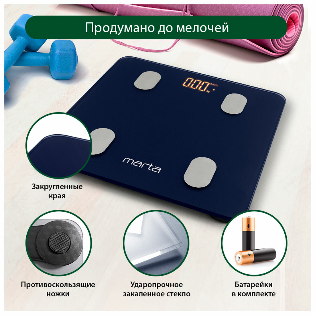 Весы напольные Marta MT-1606 синий сапфир интересное: