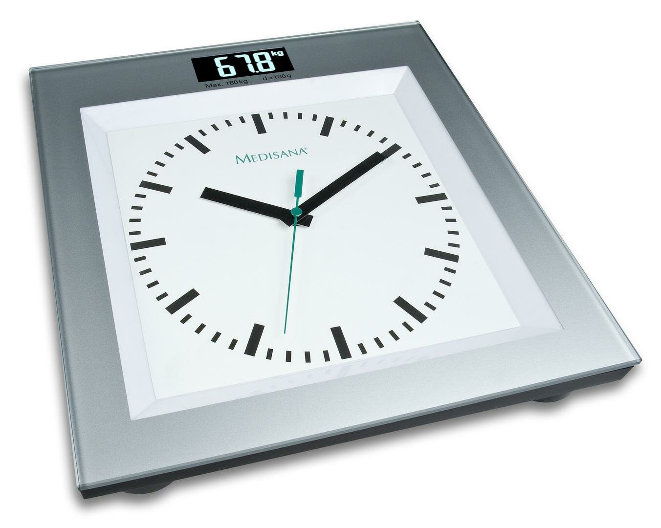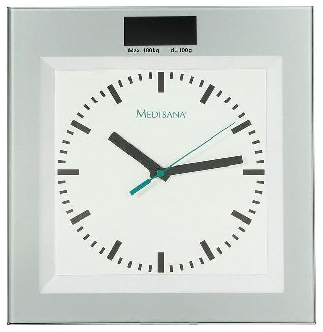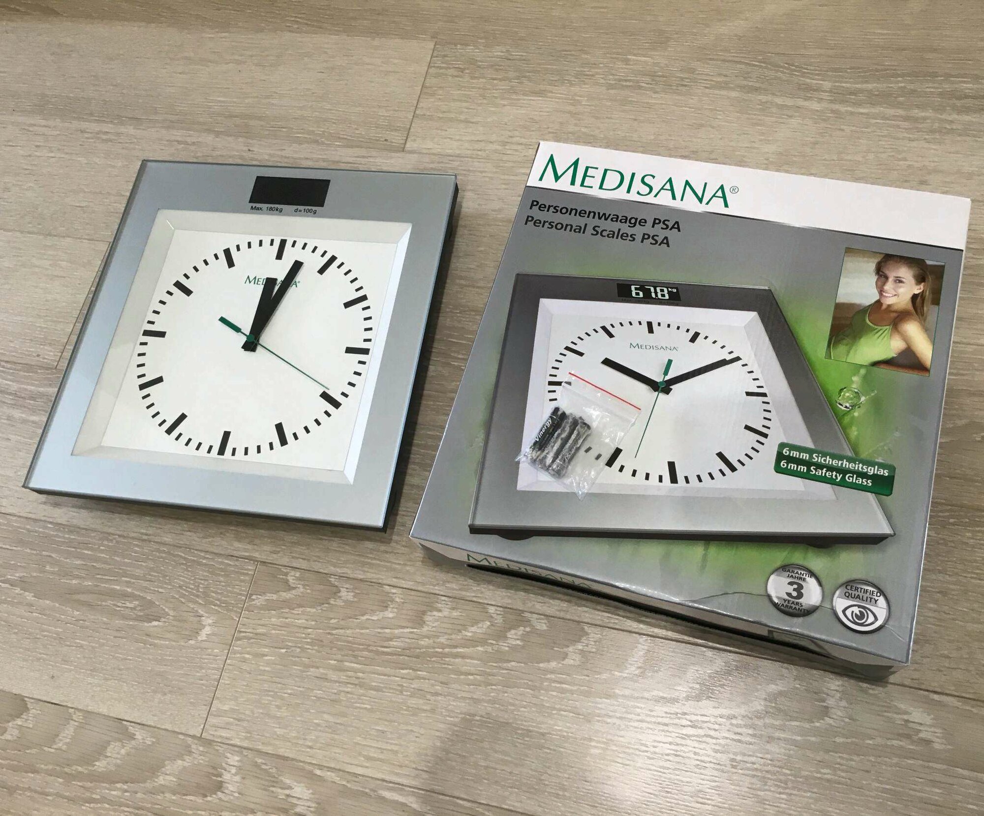 Весы напольные электронные Medisana PSA нагрузка до 180 кг, шаг 100 гр встроенные часы, серые