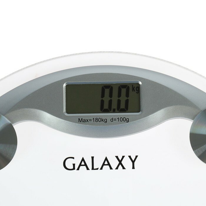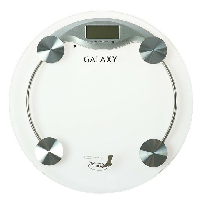 GALAXY GL 4804 Весы напольные электронные бытовые круглые, максимальный допустимый вес 180 кг, элемент питания «CR2032» в комплекте, сверхточная электронная система, платформа из высокопрочного немецкого стекла, ЖК-дисплей, цена деления 100г, автоматическ