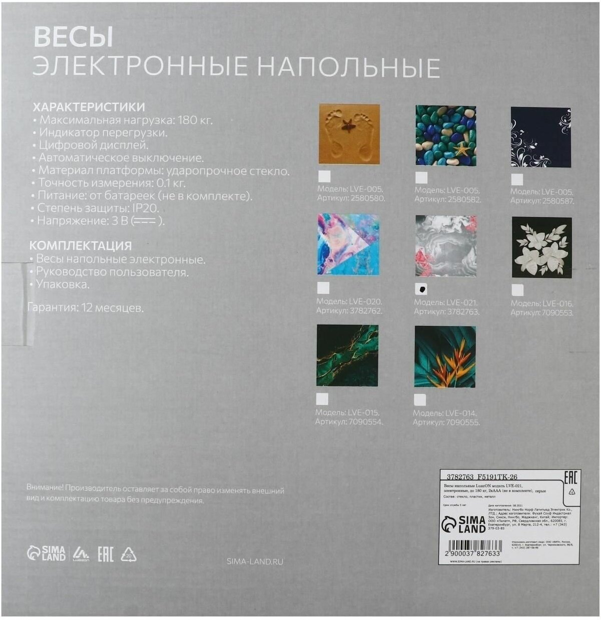 Весы напольные LVE-015 "Малахит", электронные, до 180 кг, 2хAAА