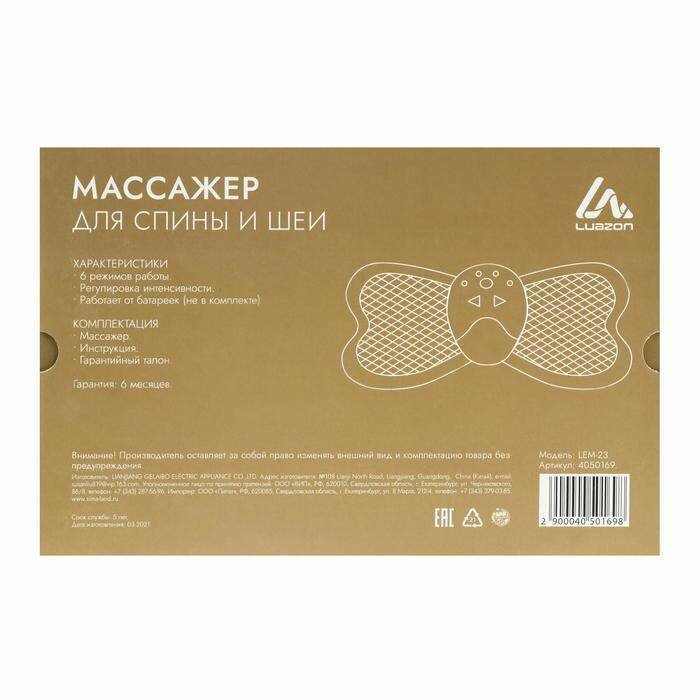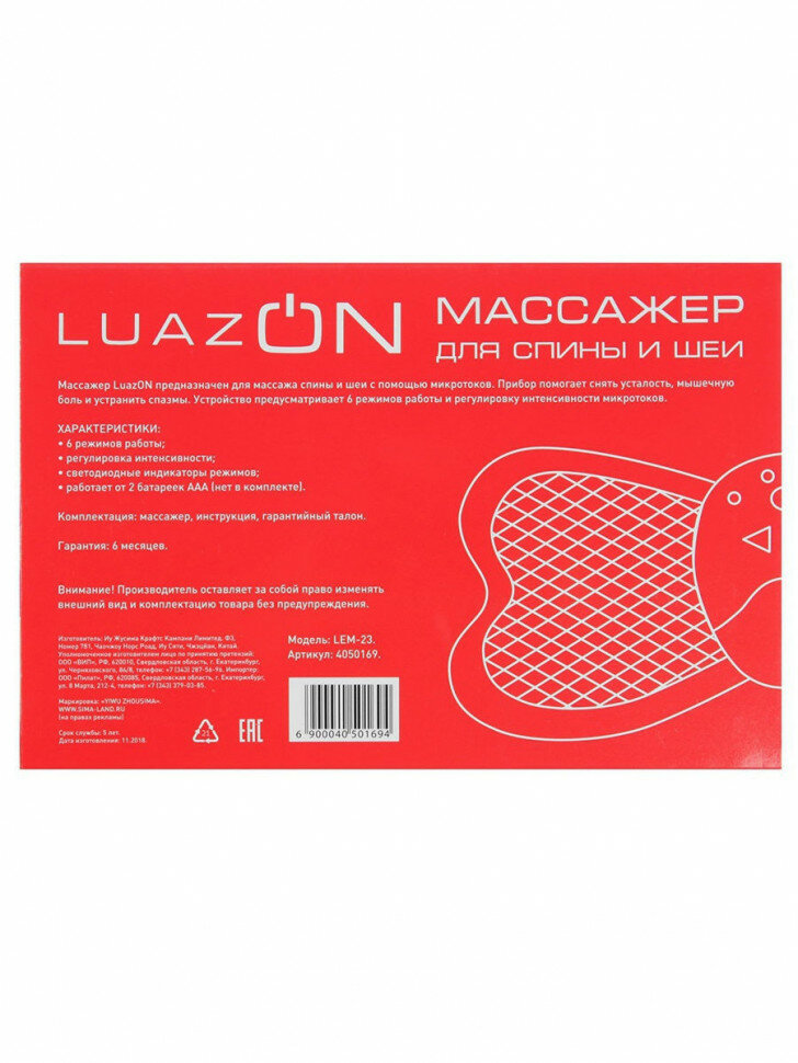 Массажёр для спины и шеи Luazon LEM-23, 6 режимов, 2хААА (не в комплекте), черный интересное: