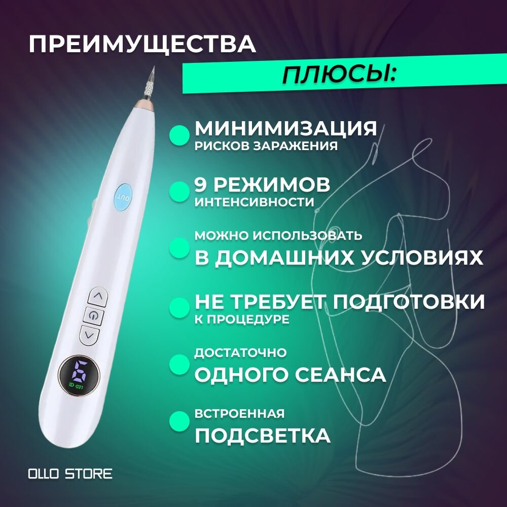 OLLO Store Плазменная ручка (Mole Freckle Removal Pen) для удаления бородавок и папиллом. Версия 5. интересное: