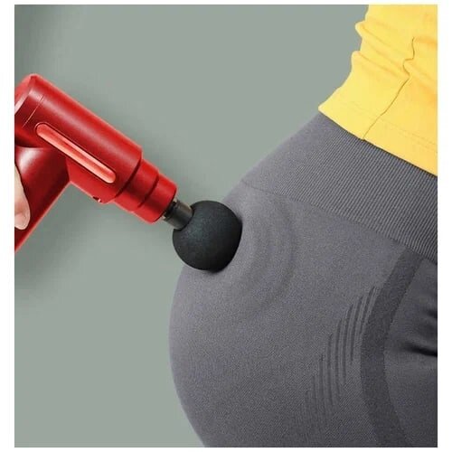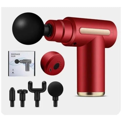 Перкуссионный пистолет массажер для мышц, массажный пистолет с насадками, вибромассажер красный интересное: