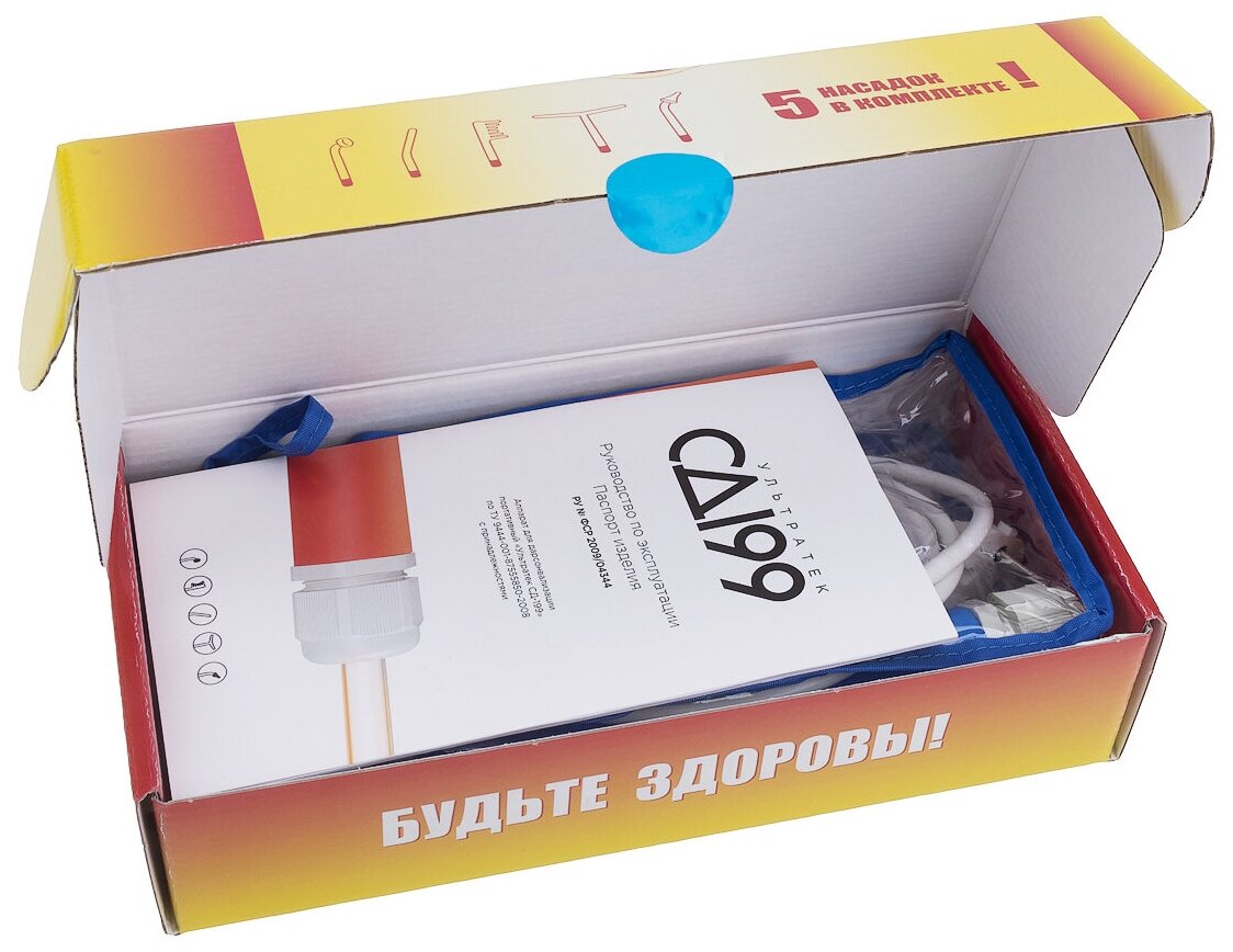 | Комплектация | - прибор; - грибовидная насадка; - гребешковая насадка; - ректальная насадка; - ушная насадка; - спинная (шейная) насадка-рогатка; - инструкция по применению. |