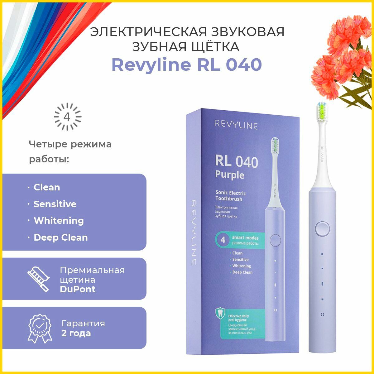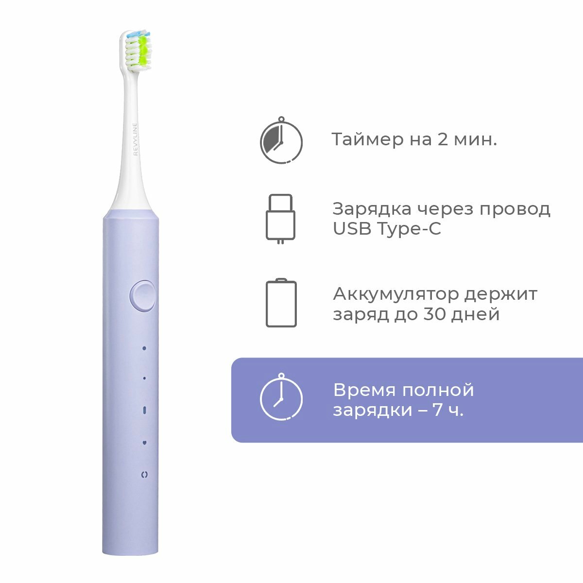 Revyline. Электрическая звуковая зубная щетка RL040, цвет фиолетовый