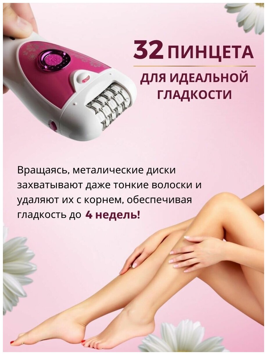 Эпилятор, эпилятор женский, электроэпилятор, для ног, для бикини, 2 скорости работы, подсветка интересное: