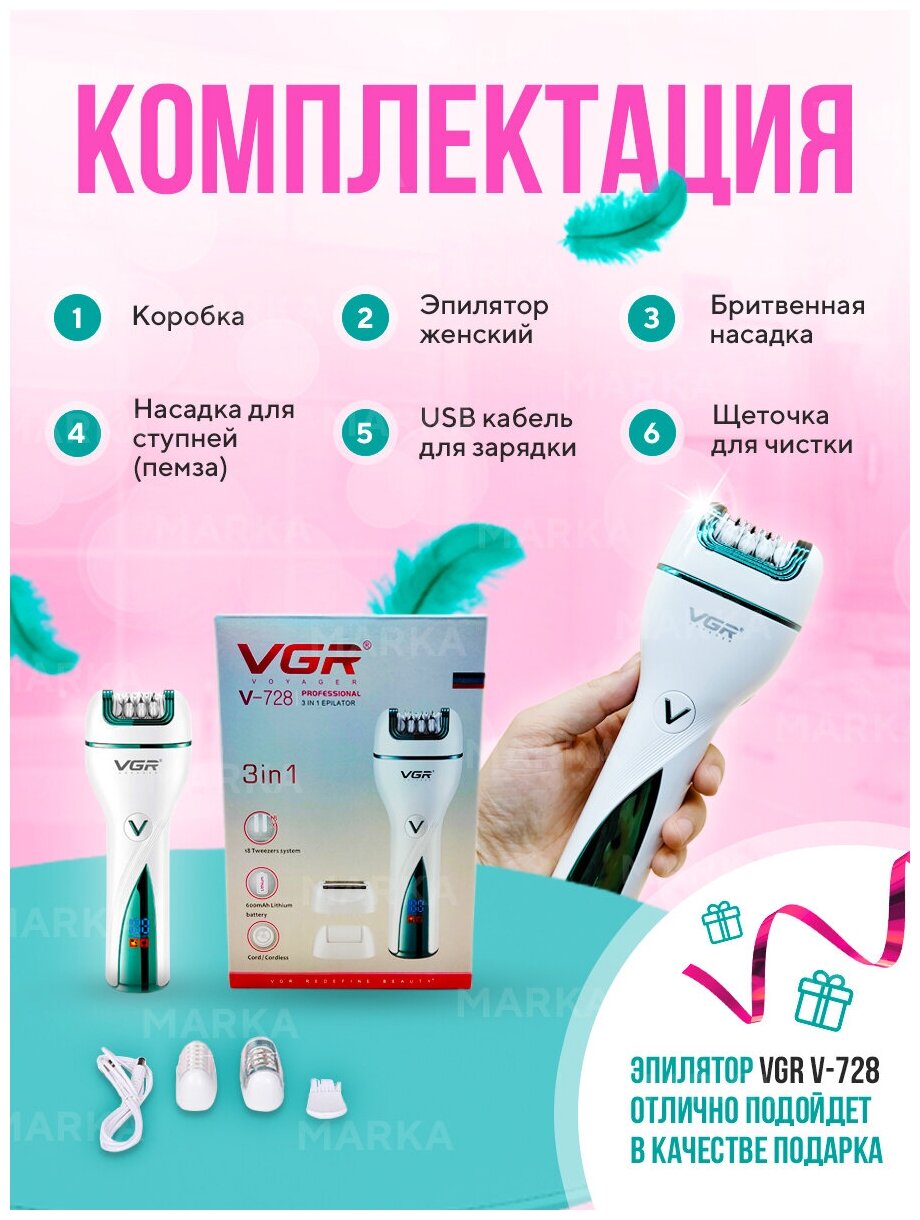 Эпилятор женский 3в1 MARKA V0728 / Бритва женская / Щетка пилинг / Электрическая пемза / Депилятор интересное: