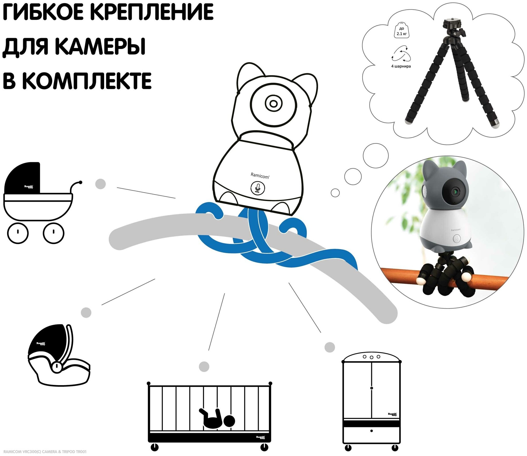 Видеоняня Ramicom VRC300CTR Wi-Fi 2K с креплением интересное: