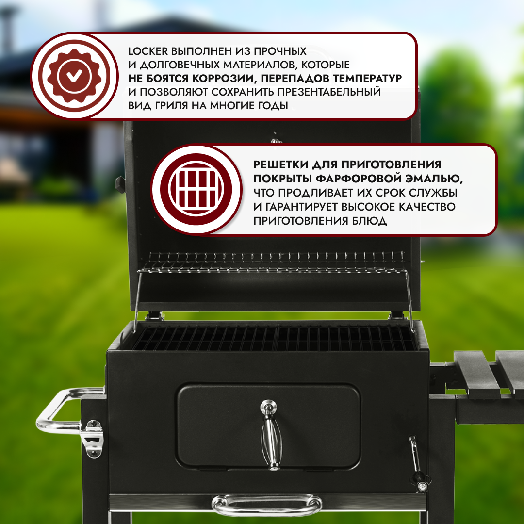 Угольный гриль барбекю. LOCKER SG. С Функцией копчения и запекания. Для дома и дачи.