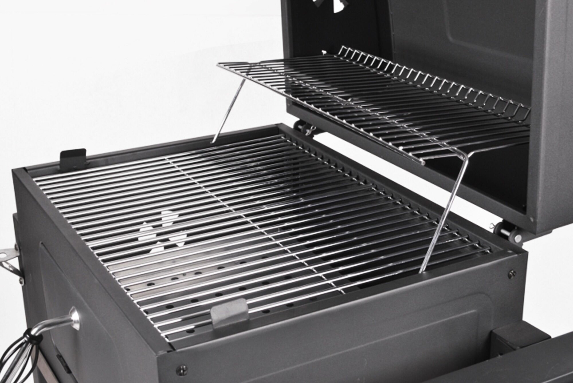 | Особенности | дровница / колёса / крышка / поддон для сбора жира / решетка / столик / термометр |