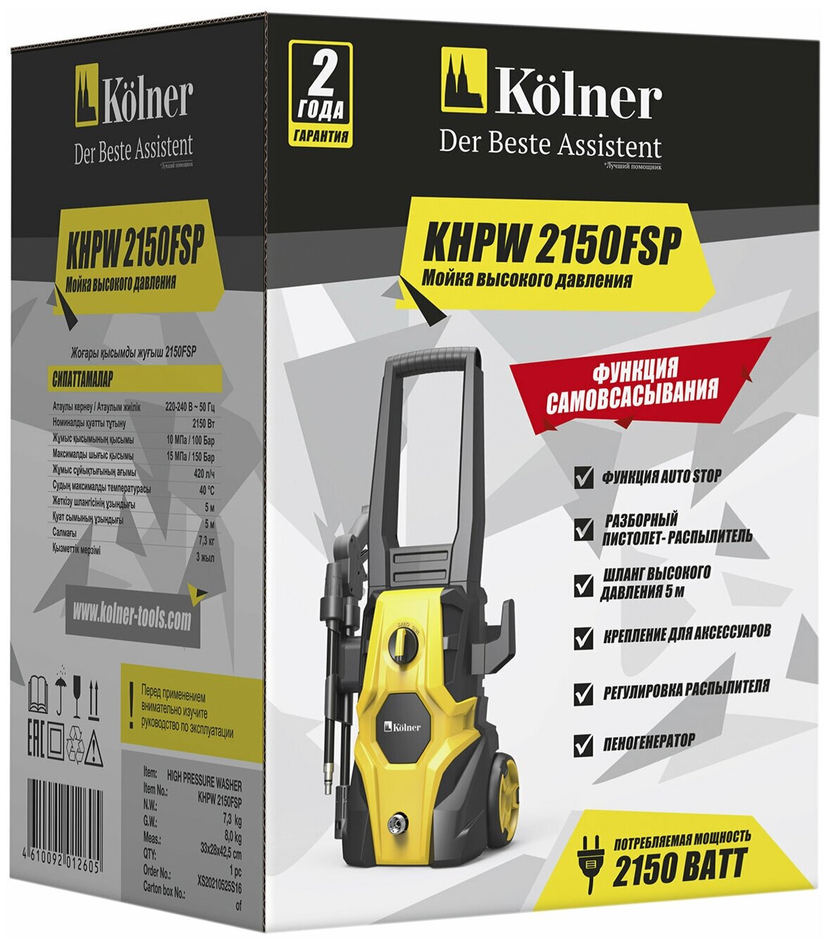 Минимойка Kolner KHPW 2150FSP 2150Вт, максимальное давление 150 Bar