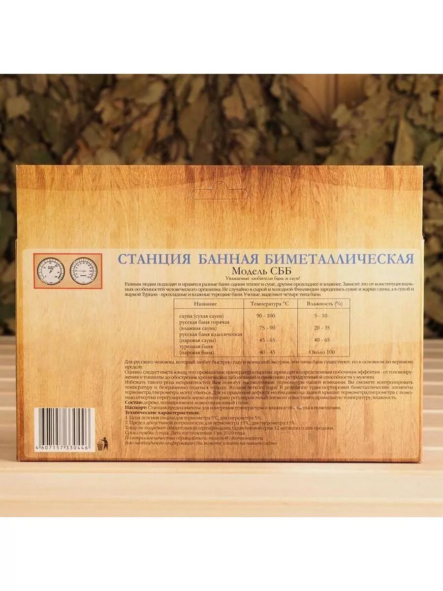 Деревянный термометр "Станция банная" биметалическая в картоне, 2545542 интересное: