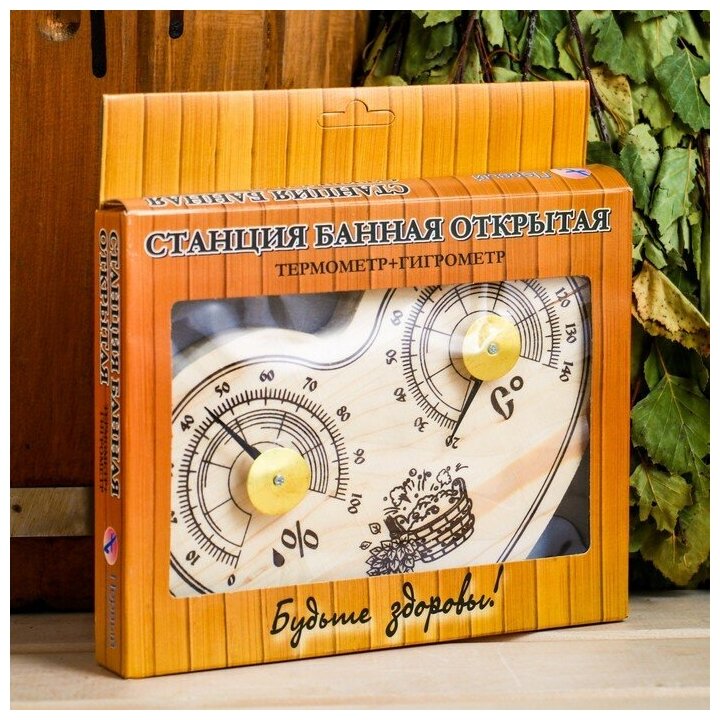 Станция банная открытая термометр+ гигрометр "Сердце" СБО-3ТГ