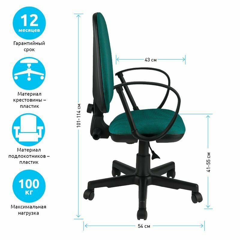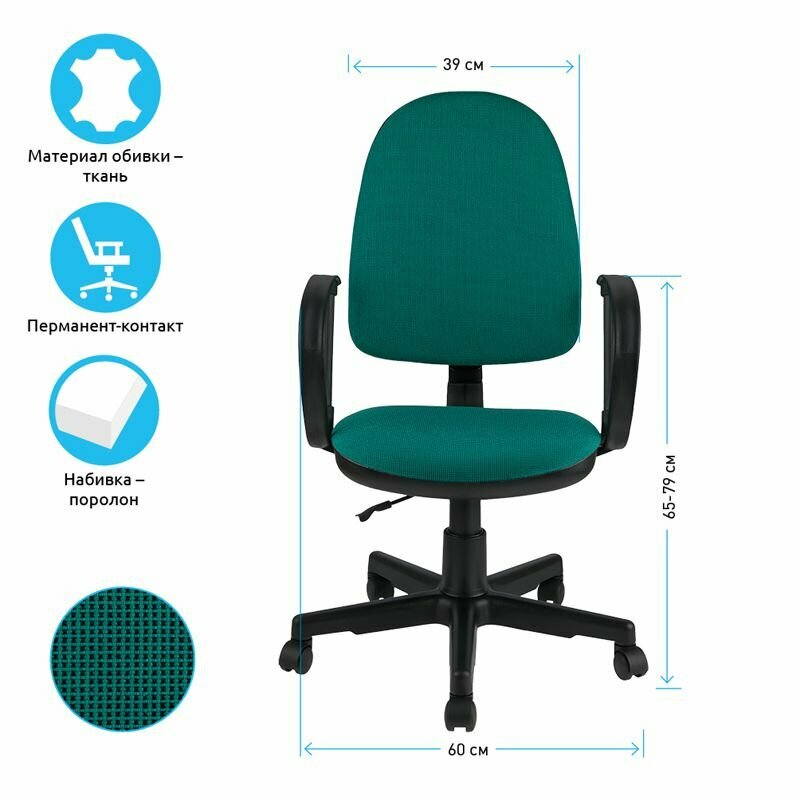 Кресло оператора Helmi HL-M30 «Престиж», ткань зеленая с черным