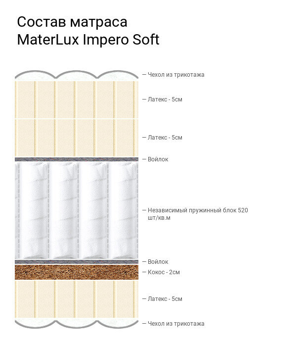 Матрас MaterLux Impero Soft, Размер 130х210 см