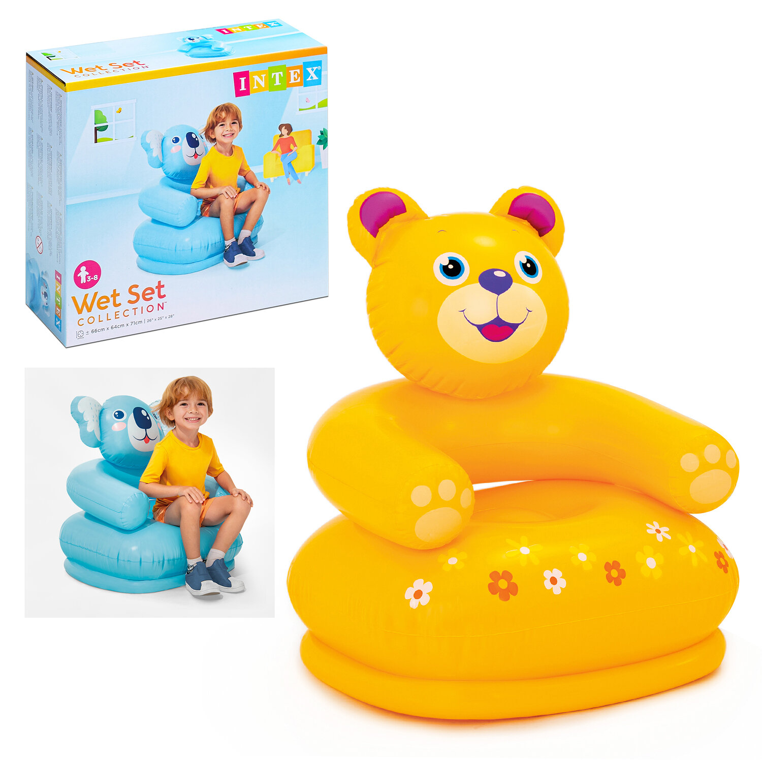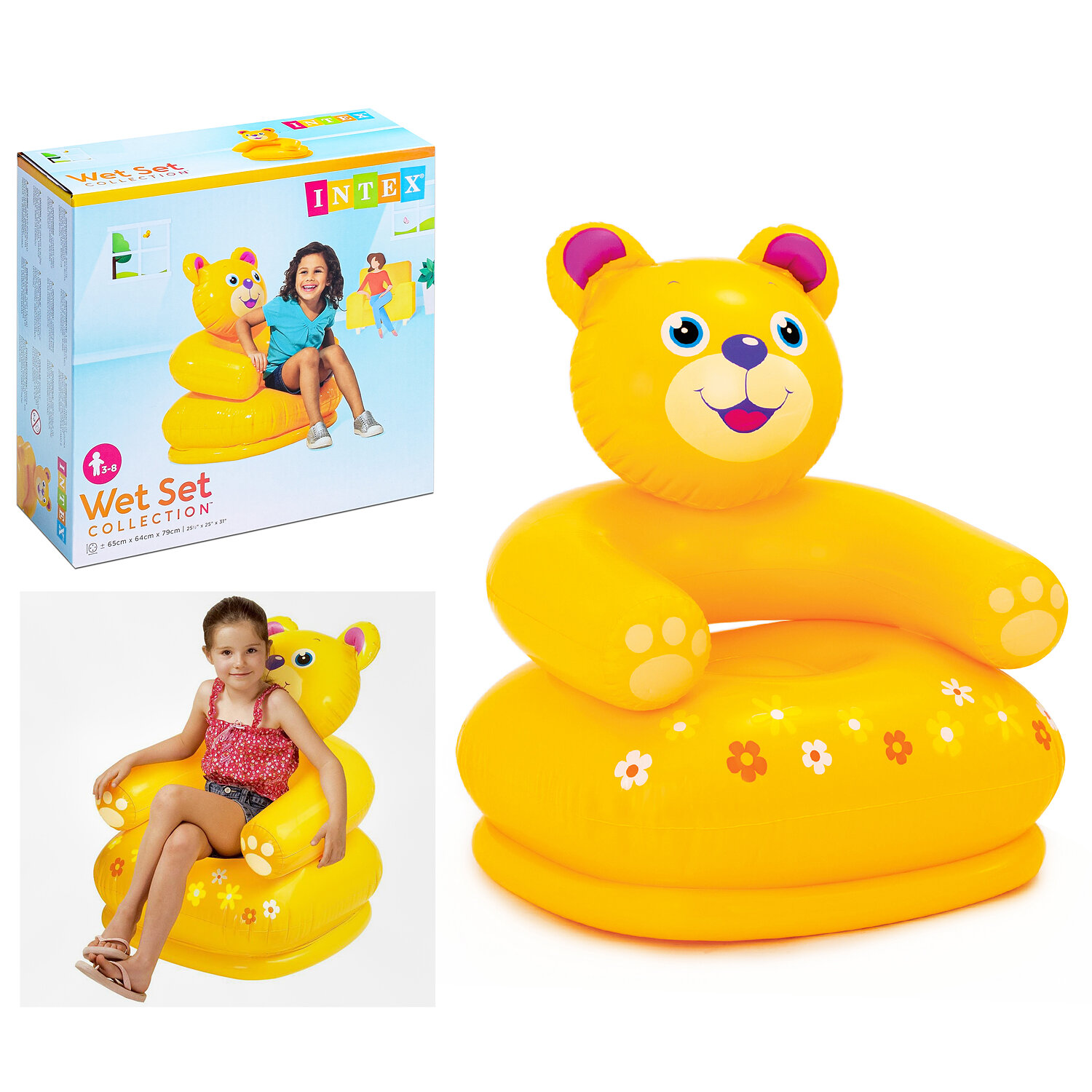 Детское надувное кресло Intex Happy Animal Chair Медвежонок, 65х64х79 см, 3-8 лет