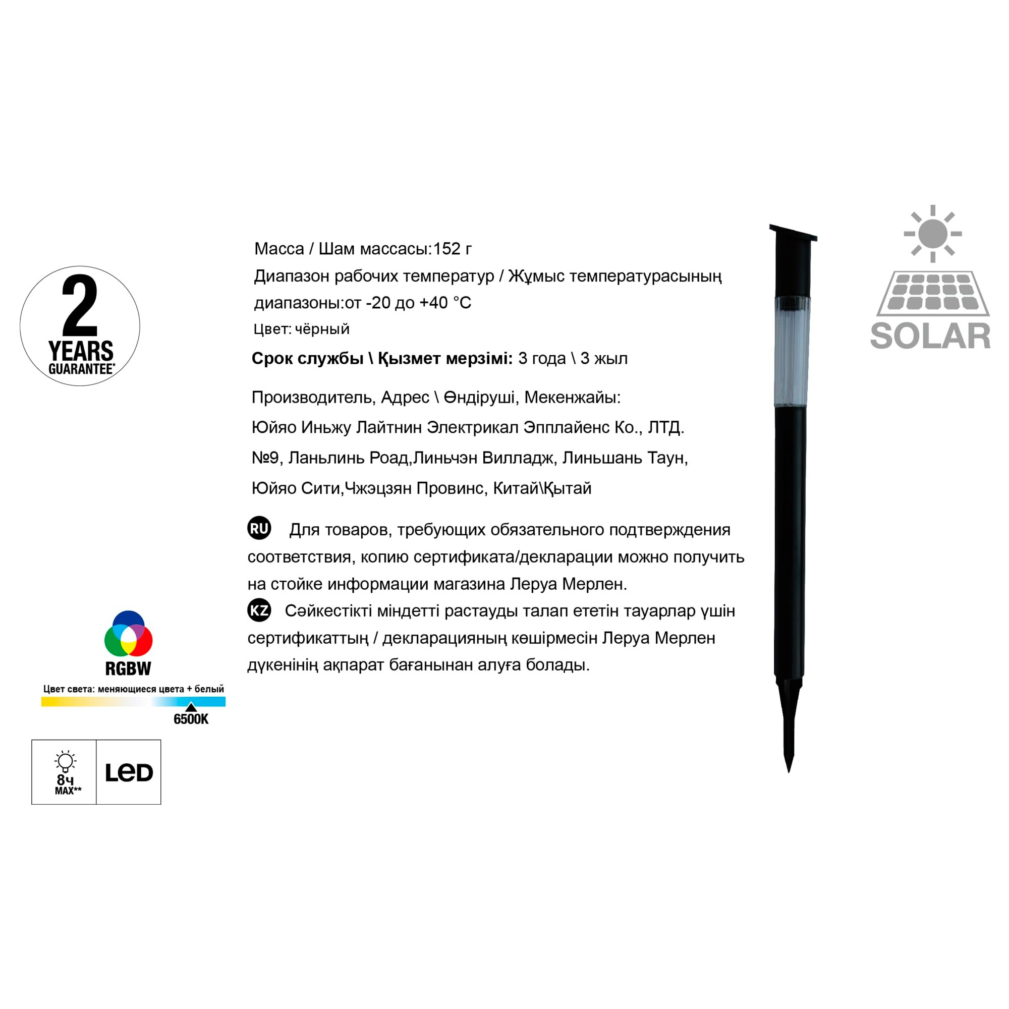 Купить Светильник садовый на солнечных батареях, 2 режима: белый и цветной RGB свет, цвет чёрный