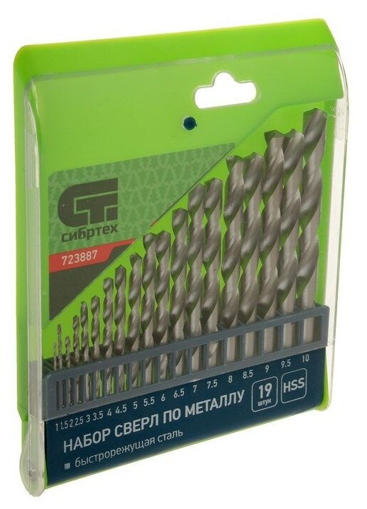 Купить Сибртех Набор сверл по металлу "СИБРТЕХ", 1 - 10 мм, HSS, цилиндрический хвостовик, 19 шт