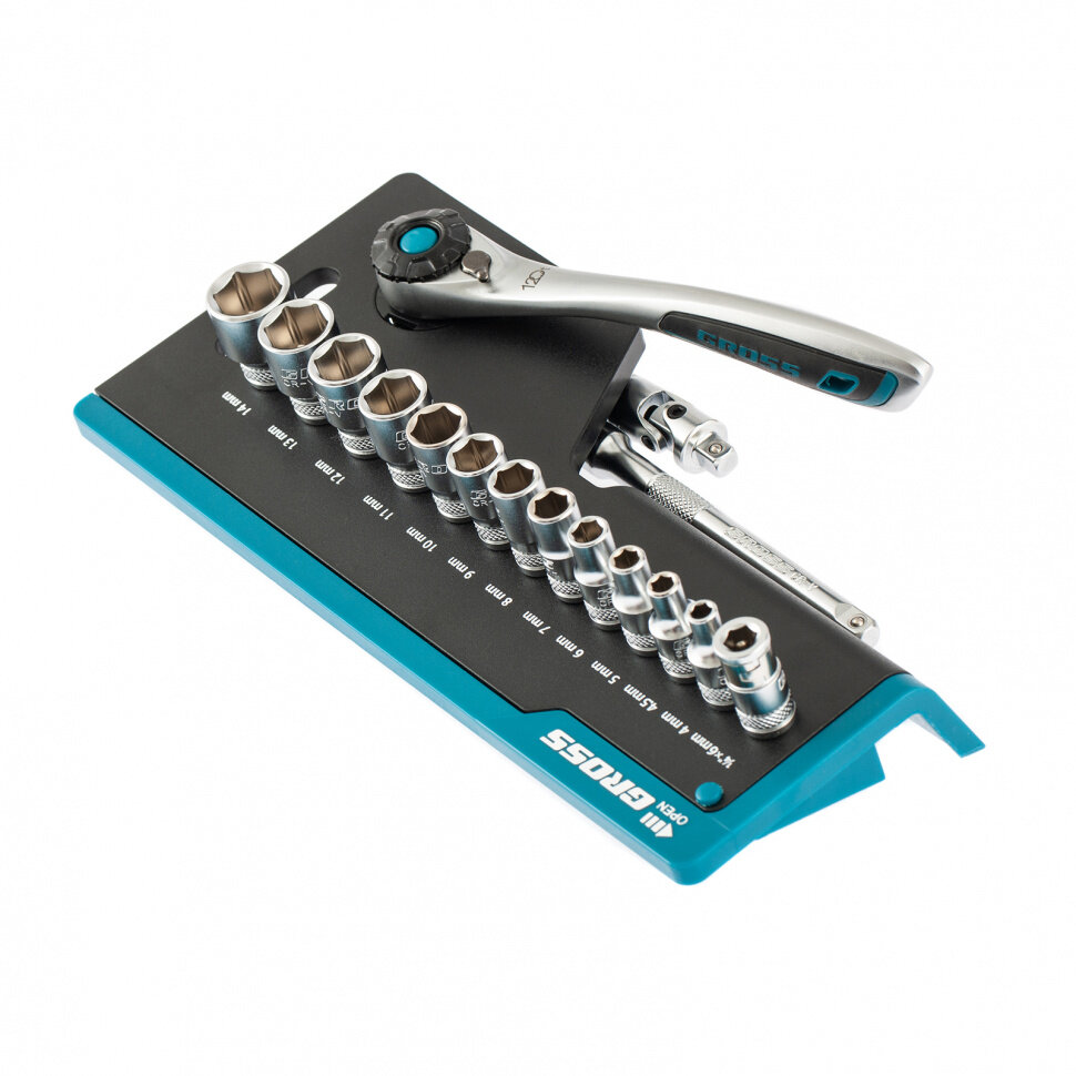 Набор торцевых головок GROSS 14142, 1/4", CrV, трещотка 120 зубьев, 36 предметов