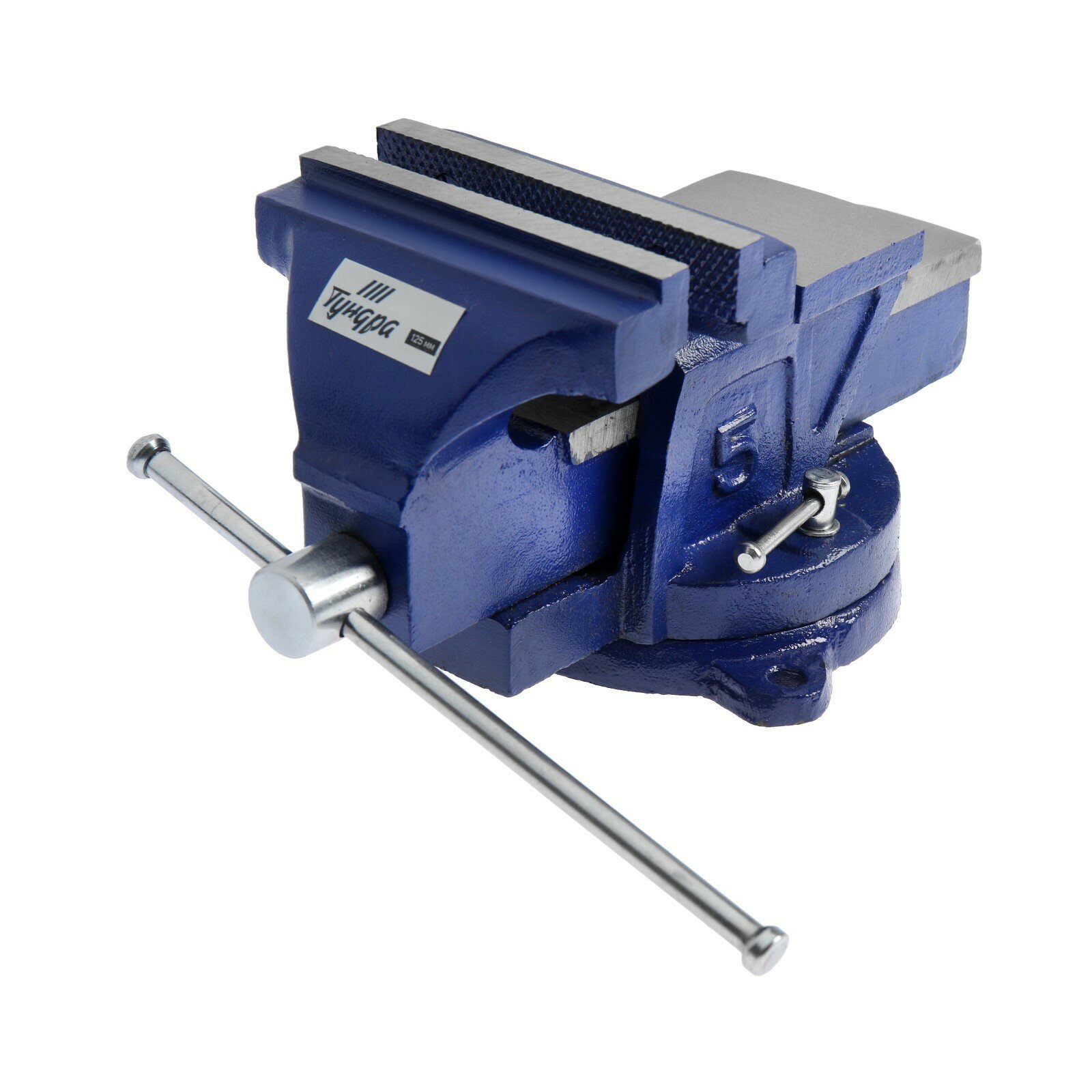Тиски слесарные поворотные тундра, с наковальней, высокопрочный чугун ВЧ-40, 125 мм