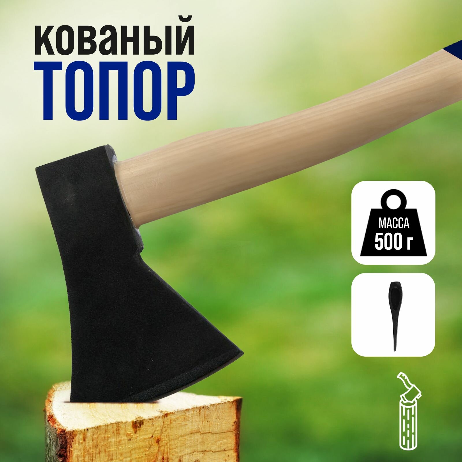 Топор кованый тундра, деревянное топорище 36 см, 500 г интересное: