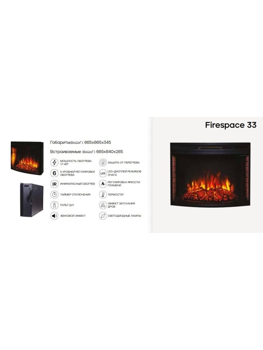 Электрокамин Real Flame Salford 33 WT-615/655 с очагом Firespace 33 S IR интересное: