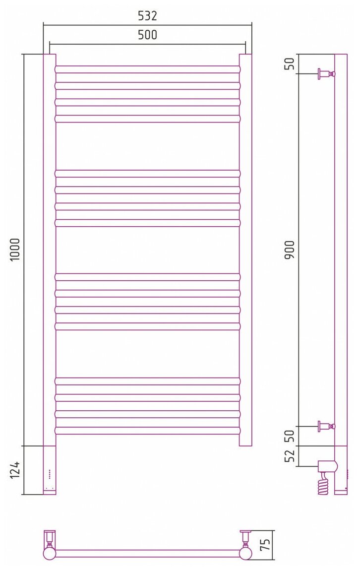 Электрический полотенцесушитель Сунержа Богема 3.0 прямая 1000х500 лтэн (без покрытия)