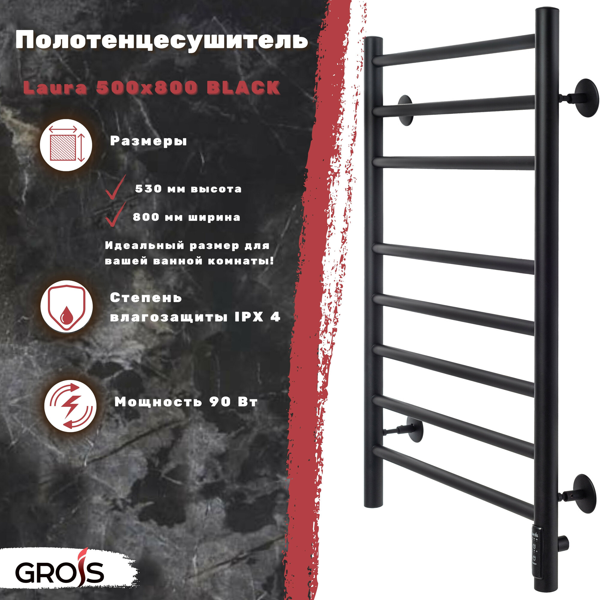 Электрический полотенцесушитель Grois Laura GR-132 500x 800 RAL 9005 П8 R Черный матовый