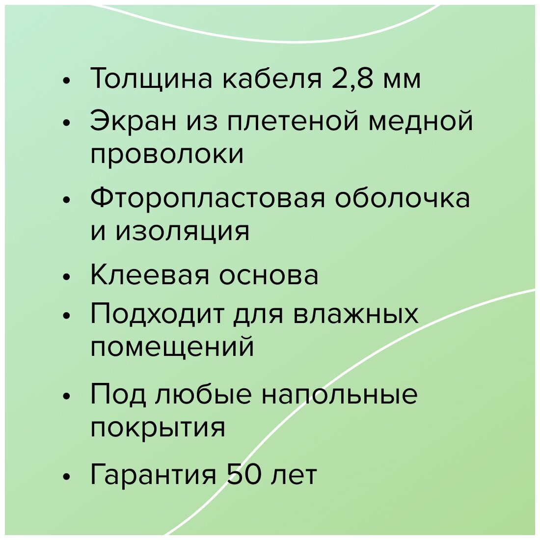 | Дополнительная информация | двойная изоляция: нагревательных жил - ТПЕЕ; внешняя - ПВХ; защитный экран - из алюминиевой фольги с дренажным проводником; толщина нагревательного кабеля 2.8 мм; класс защиты: IP67 |