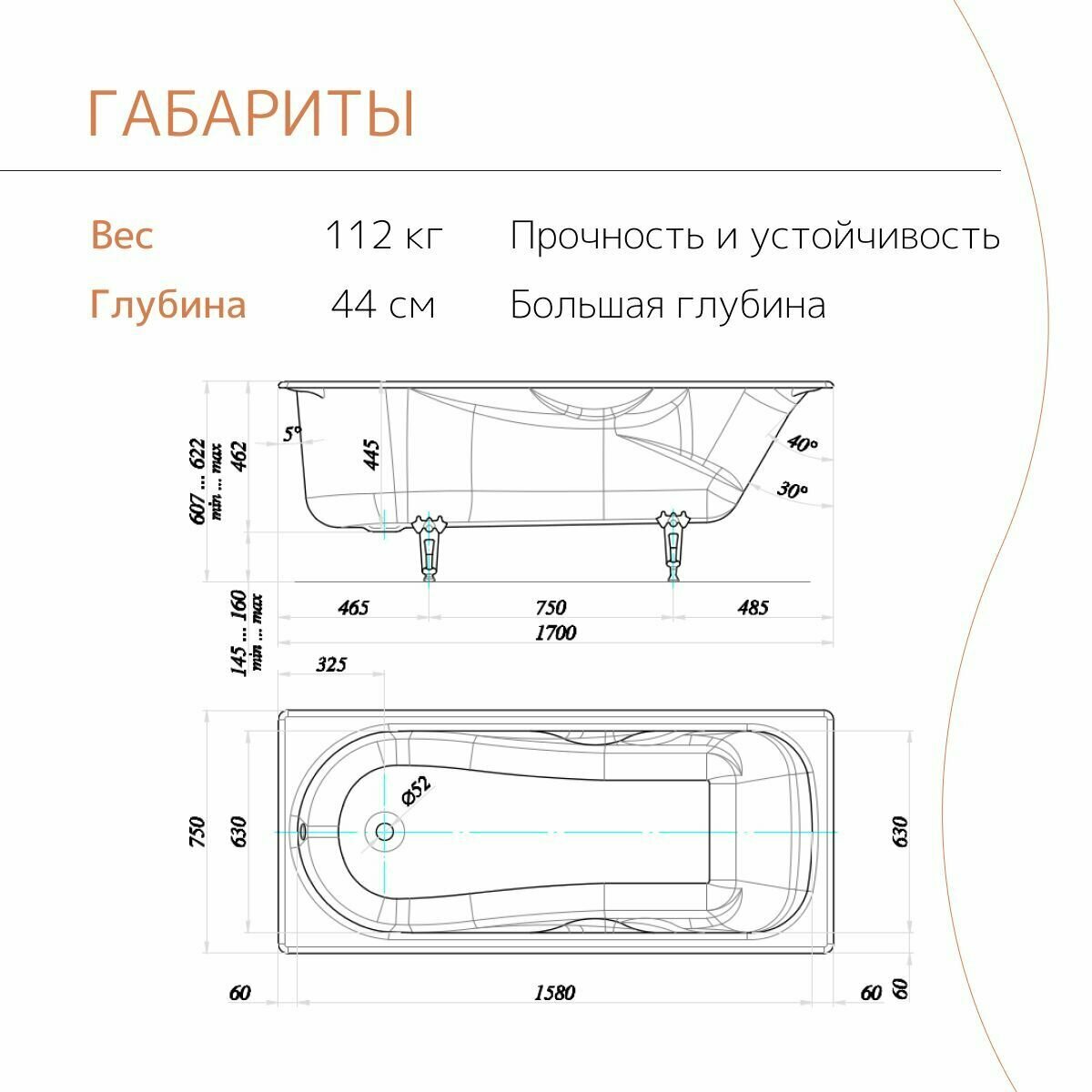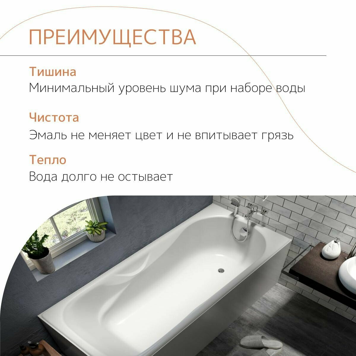 Чугунная ванна tempra Edge 170x75 круглые ручки
