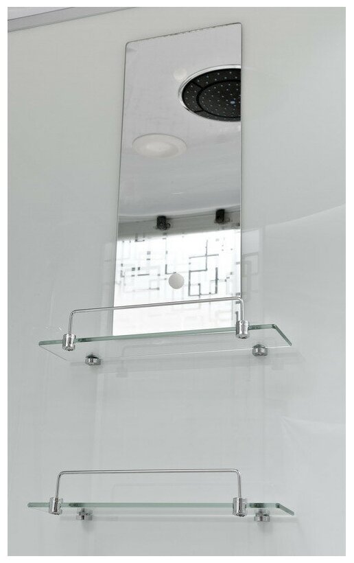 | Комплектация | зеркало, полки, регулируемая высота ножек, душевая лейка |
