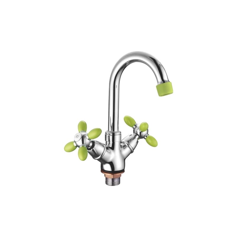 Смеситель для раковины A9482K, двухрычажный, с гайкой, зеленый/хром