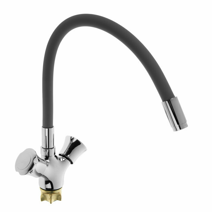 Cмеситель для кухни Accoona A4883T, двухвентильный, силиконовый излив, силумин, серый/хром Accoona 3 .