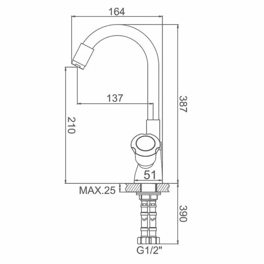 Cмеситель для кухниA4883F, двухвентильный, силиконовый излив, силумин, черный/хром