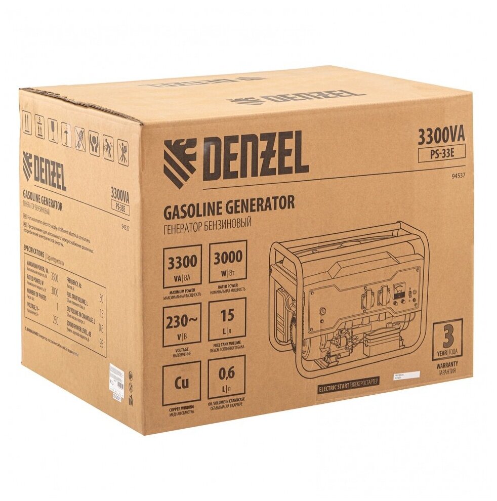 Генератор бензиновый Denzel PS-33E 3, 3 кВт, 230В, 15 л, электростартер 94537