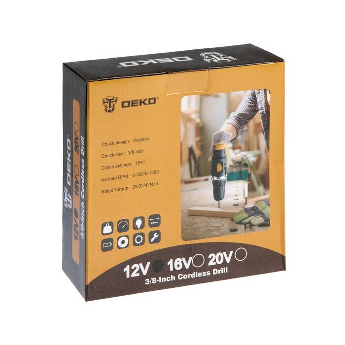 Купить Дрель-шуруповерт DEKO DKCD12FU-Li, 12 В, 1.5 Ач, Li-lon, 28 Нм, 350/1350 об/мин