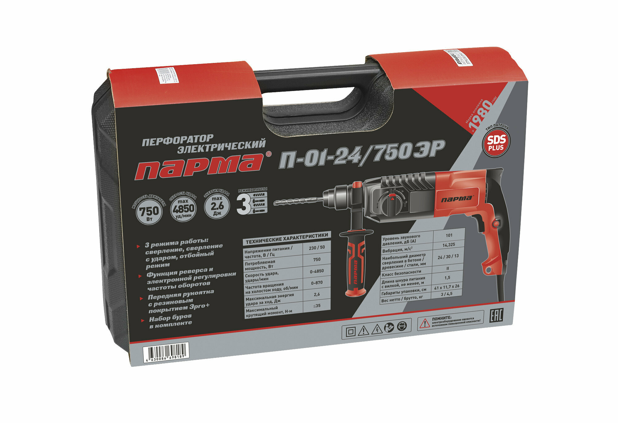 Перфоратор Парма П-01-24/750ЭР кейс, 750 Вт
