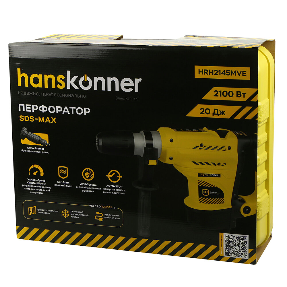 HRH2145MVE Перфоратор SDS-MAX 2100Вт, 20Дж, 2300-4300 уд/мин, 320-550об/мин, кейс, Hanskonner