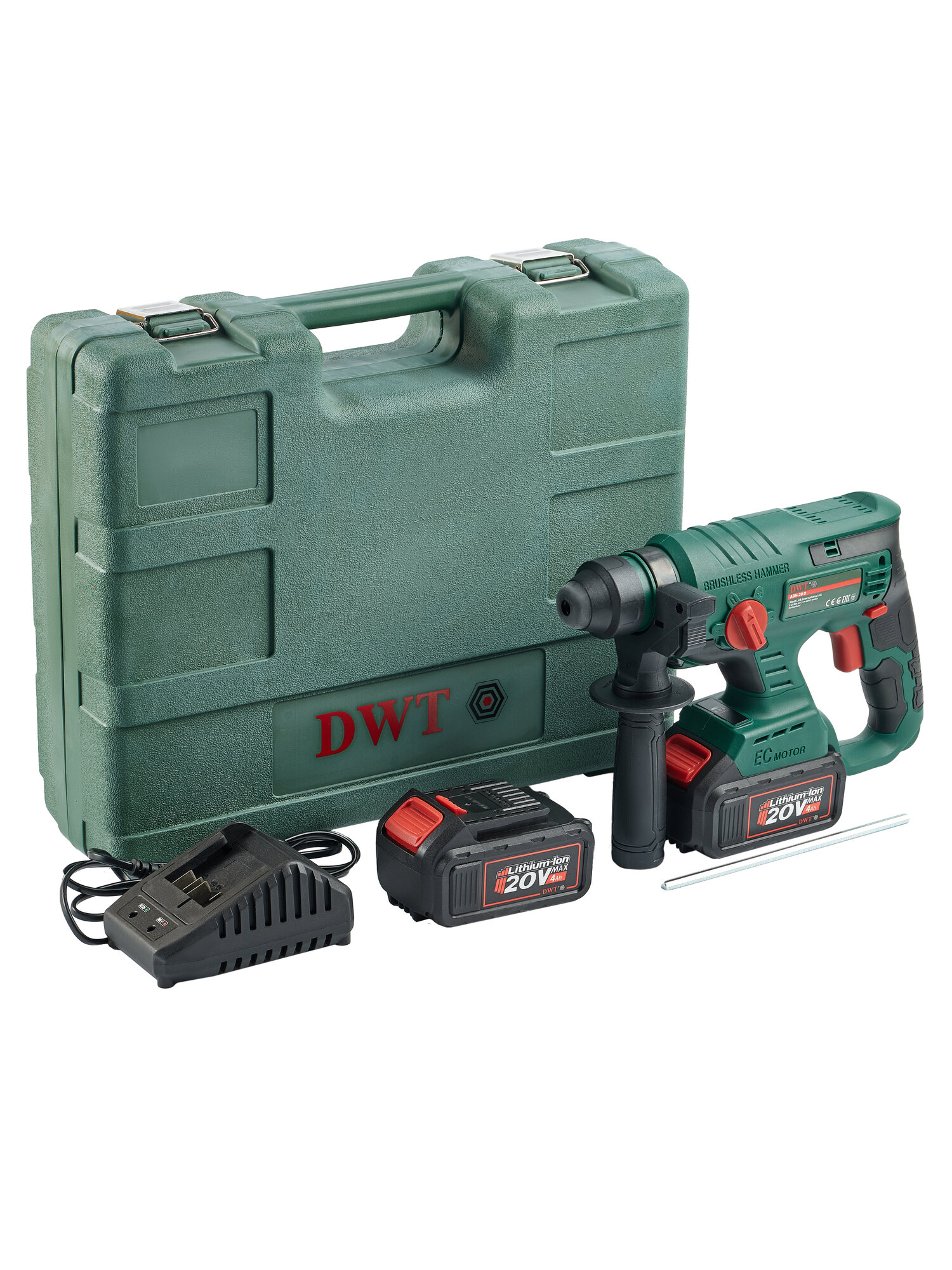 Бесщеточный перфоратор аккумуляторный DWT ABH-20 D-2H BMC (кейс, 20V, 2 аккумулятора 4А/ч)